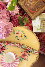 The close up detail of the painted flowers of the console table - how delightful is that?